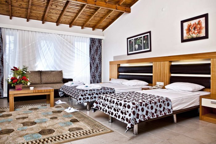 Viesnīca: atrodas 35 km no Antaljas pilsētas lidostas, 25 km no Kemeras pilsētas, Beldibi ciemā, jūras krastā. Uzcelta 1997. gadā, pēdējā renovācija veikta 2008. gadā. Kopējā platība – 53 000 m2. Viesnīca – trīsdesmit astoņas 3 stāvu un četras 2 stāvu kotedžas: 423 standard rooms (t.sk. 6 numuri invalīdiem, maks. 3 cilv., 20 m2); 16 vienistabas superior rooms (maks. 3+1 cilv., 30 m2); 59 divistabu family rooms (2 guļamistabas ar durvīm, maks. 4 cilv., 30 m2); 4 vienistabu junior suites (vestibils, guļamistaba bez durvīm, maks. 3 cilv., 25 m2); 4 divistabu suites (vestibils, guļamistaba bez durvīm, maks. 4 cilv., 35 m2); divistabu king suite (vestibils, guļamistaba bez durvīm, maks. 3 cilv., 55 m2).