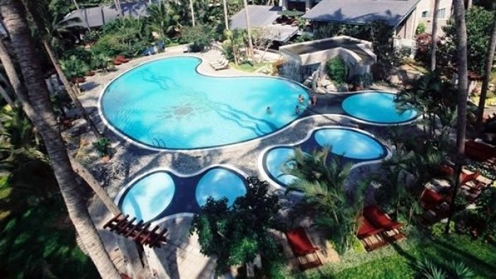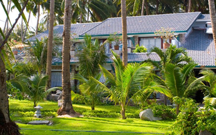 • viesnīcas teritorijas augi ieskauj zaļās kokosriekstu palmas, kurām vairāk kā 100 gadu.