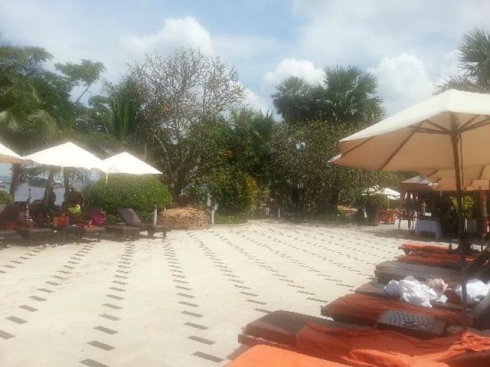 guļamkrēsli pie baseina