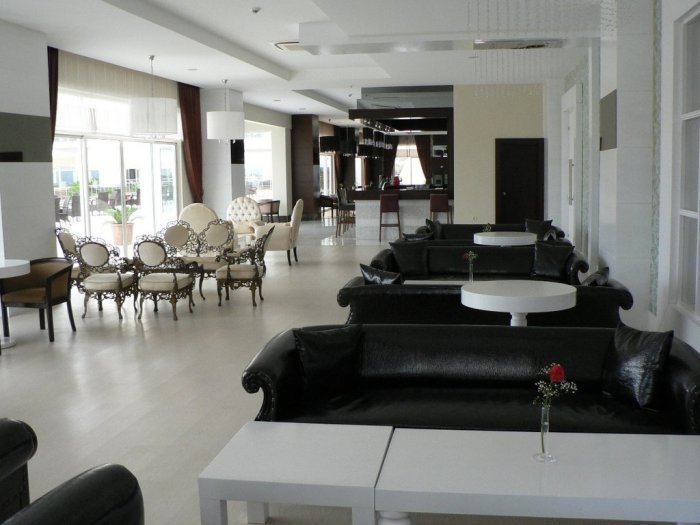 Viesnīca: atrodas 70 km attālumā no Antaljas pilsētas lidostas, 10 km no Manavgatas, pašā jūras krastā. Viesnīca uzcelta 2009. gadā, tās kopējā platība 50 000 m2. Viesnīca - 5 stāvu korpuss: 403 standard rooms (maks. 3 cilv., 30 m2), t.sk. 6 numuri invalīdiem; 130 divistabu family rooms (2 guļamistabas ar durvīm, maks. 4 cilv., 50 m2); 10 vienistabas king suite (liela guļamistaba ar džakuzi, french bed, mīkstais stūrītis, vannasistaba, duša, TV, minibārs, skats uz jūru, maks. 2 cilv., 80 m2).