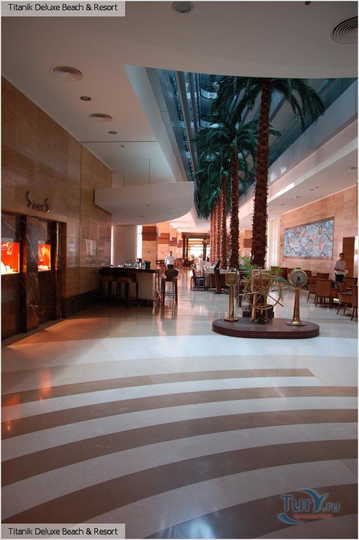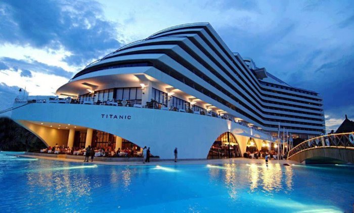 Viesnīca: atrodas 10 km attālumā no Antaljas lidostas, 12 km no Antaljas centra, pašā jūras krastā. Uzcelta 2003. gadā, tās kopējā platība 95 000 m2. Viesnīca – viens galvenais 9 stāvu korpuss Main Building, viena 2 stāvu ēka Port Titanic un piecas 2 stāvu kotedžas Villas.