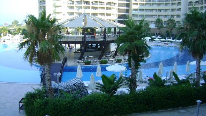 Отель: расположен в 80 км от аэропорта г. Анталья, в 10 км от г. Манавгат, в 30 м через дорогу от пляжа по подземному переходу. Построен в 2008 году, общая площадь 50 000 м2. Отель состоит из одного 6-этажного корпуса (80% номеров с видом на море): 400 standard rooms (макс. 3 чел., 28 м2); 22 однокомнатных family rooms FА (french bed и двухъярусная кровать, ванная комната, макс. 2+2 чел., 30 м2); 24 двухкомнатных family rooms FB (2 спальни с дверью, ванная комната, макс. 3+1 чел., 45 м2); 33 двухкомнатных family rooms FС (2 спальни с дверью, 2 ванные комнаты, макс. 4+1 чел., 65 м2).