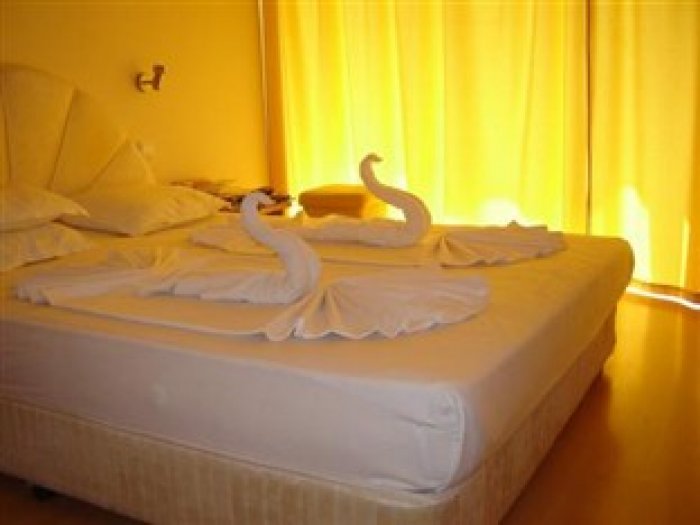 Numuros (apmēram 12 m2) ir duša, tualete, balkons, gaisa kondicionētājs (centrālais, darbojas periodiski), telefons, televizors, ledusskapis.