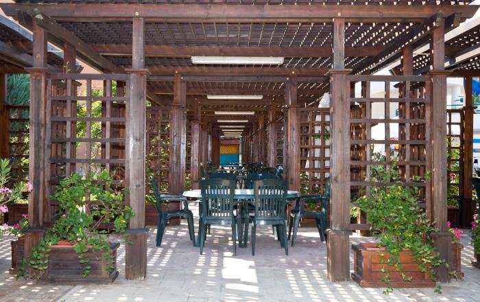 Atpūtas krēsli un saulessargi pie baseina - bez maksas, pludmalē - par papildus samaksu.