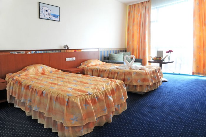 Numuros (apmēram 28 m2) ir duša (fēns, halāts), tualete, bidē (dažos numuros), balkons, gaisa kondicionētājs (centrālais), telefons, televizors. Mini bārs un seifs - par papildus samaksu.