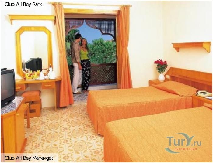 ”Ali Bey Park” un „Ali Bey Club Park Manavgat”– dvīņu viesnīcas. To atšķirība piedāvātajā ēdināšanas sistēmā: „AI” un „UAI”. Lieliska viesnīca atpūtai ģimenēm ar bērniem. Viesnīcas teritorijā atrodas viens no lielākajiem akvaparkiem piekrastē. 62 tenisa korti pieaugušajiem un bērniem. Plaša pludmale, labi numuri.