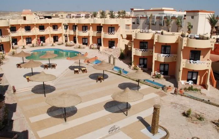 Viesnīca: atrodas 320 km no Hurgadas pilsētas lidostas, jūras krastā. Viesnīca – komplekss 2 stāvu korpusu. Kopā 120 standard rooms (maks. 2+1 cilv., 35 m2).